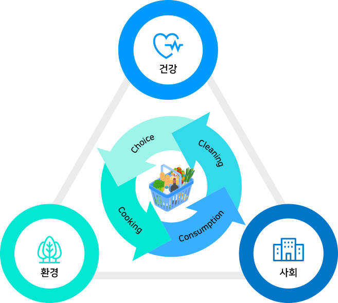 ESG ( Environmental, Social and Governance ) 경영 지속가능 식생활 기여 건강을 증진하면서 환경보호와 사회 공정성에 기여할 수 있도록 식품을 선택, 조리, 섭취, 폐기하는 생활방식